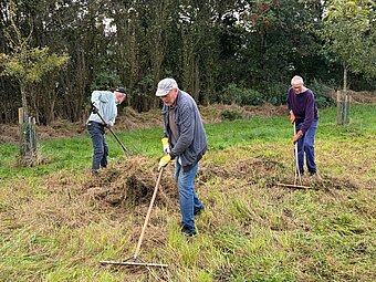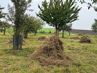 Bei unserem letzten Arbeitseinsatz auf einer Streuobstwiese in Neuenkirchen waren sechs Helfer dabei. Gemeinsam haben wir das abgeschnittene Heu abgeharkt – eine wichtige Pflegearbeit, damit die Wiese artenreich bleibt und vielen Tieren und Pflanzen Lebensraum bietet.