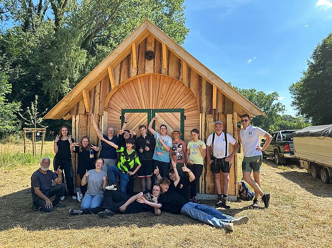 Das Projekt ist der gelungene Startschuss für die Kooperation zwischen der Geschwister-Scholl-Schule und dem NABU Emsdetten und der Nutzung der Streuobstwiese als außerschulischem Lernort. Der Bau der Hütte schafft dafür gewissermaßen erst die Voraussetzungen, denn hier können Tische, Bänke und auch Materialien gelagert werden.