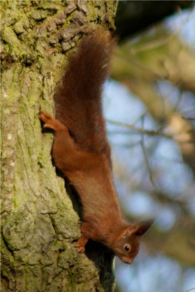 Während dieser Waldwanderung ließ sich zufällig ganz naturnah ein Eichhörnchen bei seinen Aktivitäten beobachten. Eichhörnchen gehören zu den Tieren die Winterruhe halten. Diese Tiere schlafen über einen mehrtägigen Zeitraum und wachen zur Futtersuche und -aufnahme kurzzeitig auf.