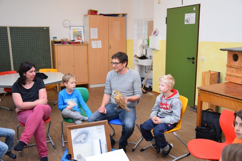 Dass es ein gelungener und für alle spannender Nachmittag war, der bei den Kindern nachwirkt, wurde uns bewusst, als eine Mutter noch am selben Abend ein Foto ihres Kleinen schickte, wie er sich begeistert das vom Eulenfachmann mitgebrachte Eulenposter über’s Bett hängt …