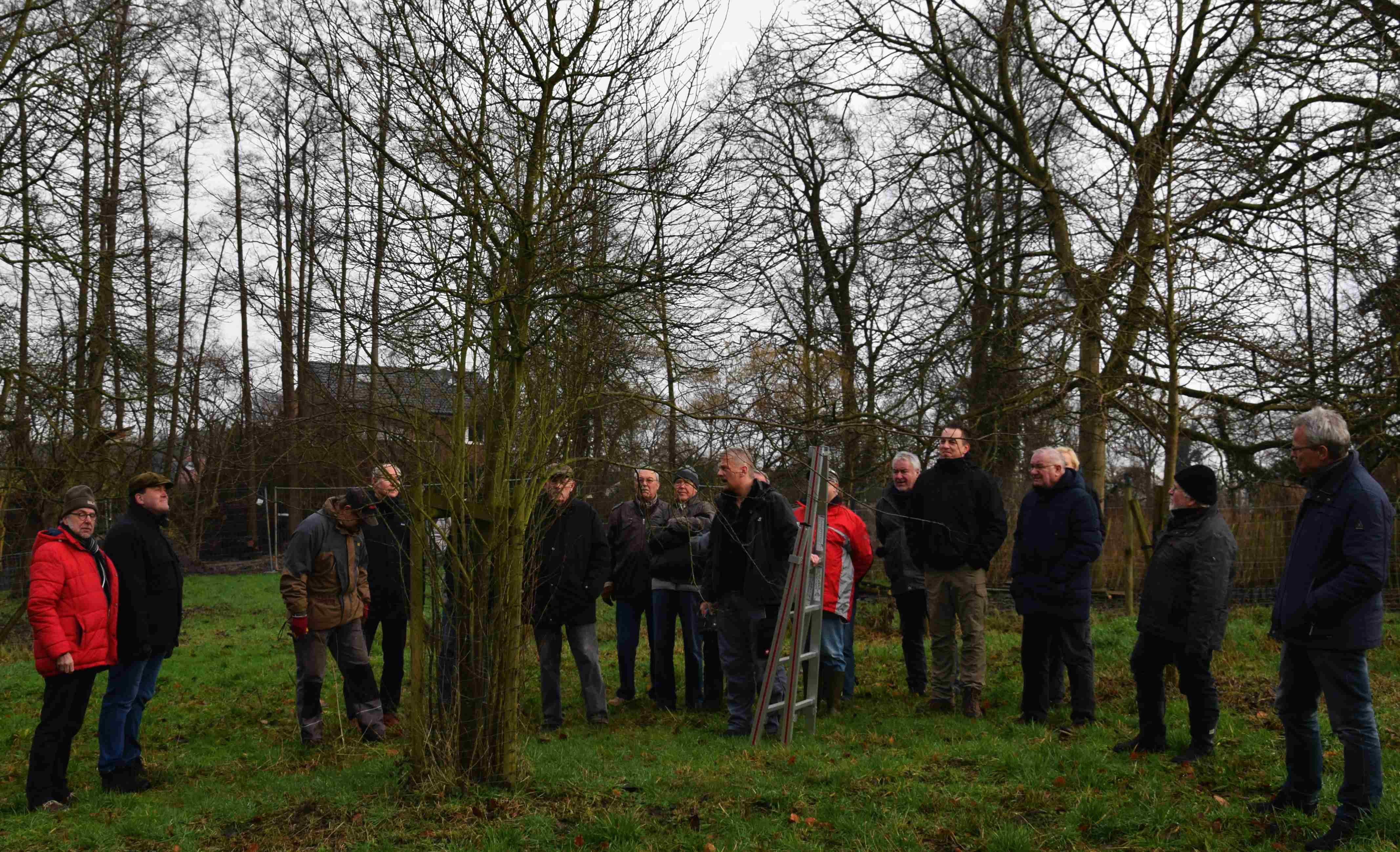 Die theoretischen Grundlagen konnten die Teilnehmer unter Anleitung von Olaf Titlus anschließend draußen in der Streuobstwiese am Heimathaus auch praktisch nachvollziehen.