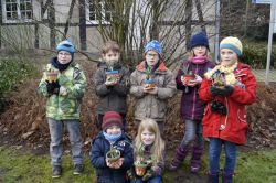 Am Samstagmorgen trafen sich sieben Kinder im Grundschulalter mit den NAJU-Betreuern Michaele von der Straten und Lars Gremme. Nach einem Waldspaziergang mit Vogelbeobachtung ging es in die warme Stube des Kunstmeisterhauses.