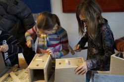 In Sachen Naturschutz wurden 16 Kinder im Grundschulalter aktiv und bauten Vogelnistkästen. Die NAJU-Rheine hatte am Samstagmorgen zu dieser Aktion ins Kunstmeisterhaus eingeladen.
