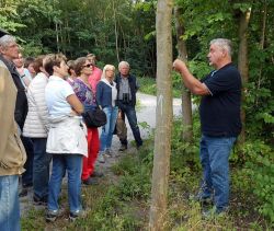 Eine Pflanzenexkursion mit Winfried Grenzheuser, einem ausgesprochenen Kenner des Waldhügels bildete den Abschluss der NABU-Vortragsreihe „Vielfalt der Natur“. Ein hochinteressiertes Publikum fand sich ein, um sich über die hier siedelnden Pflanzen informieren zu lassen, nach einer botanischen Erhebung sind es 918 Arten.